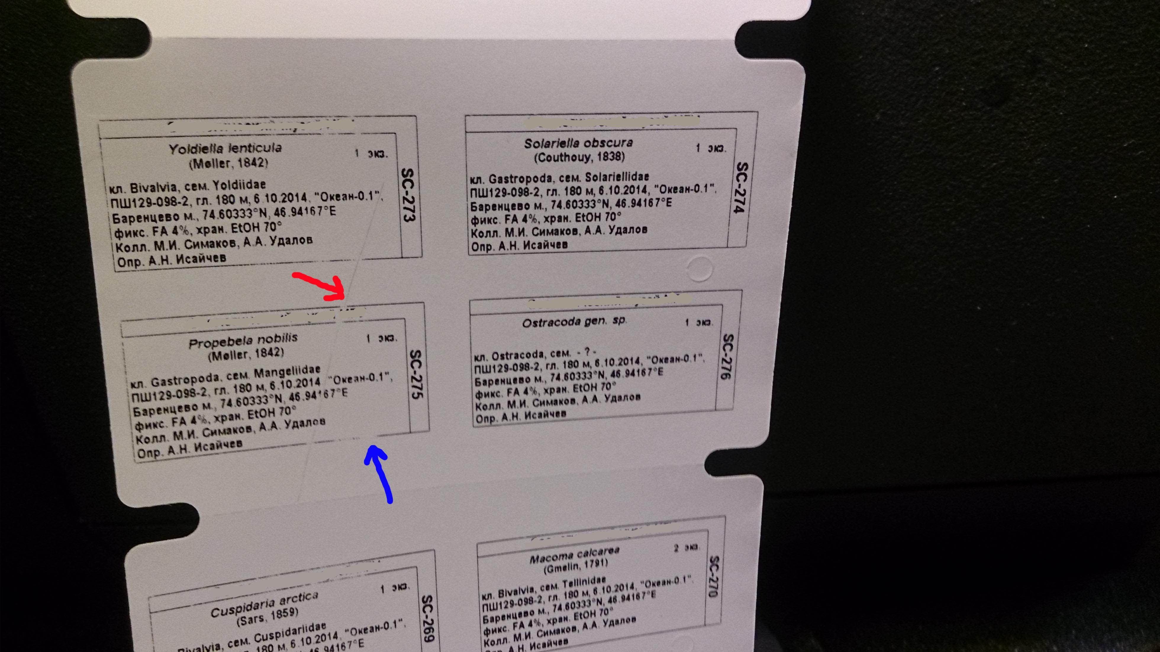 Продольные складки всё-время образуются в одном месте - слева - (прилагаю фото ленты и этикеток, синей стрелкой показан деффект). Есть всё-время, портят несильно. (на фото видно, что левый ряд этикеток получается плохо, правый - хорошо)
