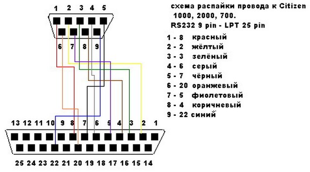 Коллеги, у кого-нибудь есть схема распайки интерфейсного кабеля для термопринтера Citizen CBM 1000?